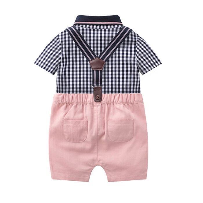 Gingham check rompers & suspender pink pants